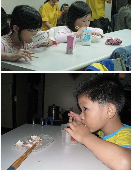 他們三個小朋友吃的津津有味呢