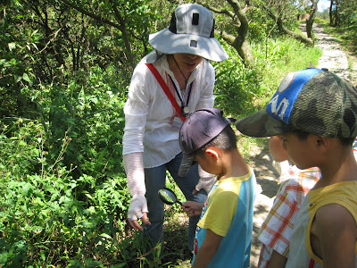 導覽員細心的準備放大鏡讓小朋友更清楚的觀察